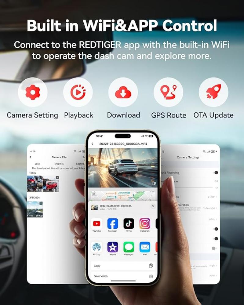 كاميرا الداش كام REDTIGER F9 تقدم ميزات متقدمة لتعزيز أمان سيارتك وتوثيق رحلاتك بجودة عالية. إليك تفاصيل المنتج: