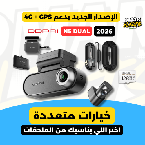 داش كام DDPAI N5 DUAL الإصدار الجديد 2026 مع ذاكرة مدمجة 32 جيجا تمنحك حماية شاملة بزاويتين: أمامية بدقة 4K HDR حقيقية، وخلفية بدقة Full HD، لتوثيق كل ما يحدث أمام وخلف سيارتك بدقة عالية. تدعم نظام GPS مدمج لتسجيل الموقع والسرعة تلقائيًا، وتعمل بمكثف فائق بدلاً من البطارية لتحمل درجات الحرارة المرتفعة ومن ضمن الخيارات المنفصلة ( قطعة الرادار ) تدعم رصد الحركة القريبة من السيارة من الامام والخلف. و (قطعة 4G) تدعم متابعة ومشاهدة الداش كام عن بعد. الكاميرا تدعم التحكم من تطبيق الجوال، وكذلك الأوامر الصوتية، وتوفّر تصويرًا ليليًا محسّنًا بفضل تقنية HDR الجديدة، مع واجهة تطبيق كاملة باللغة العربية.