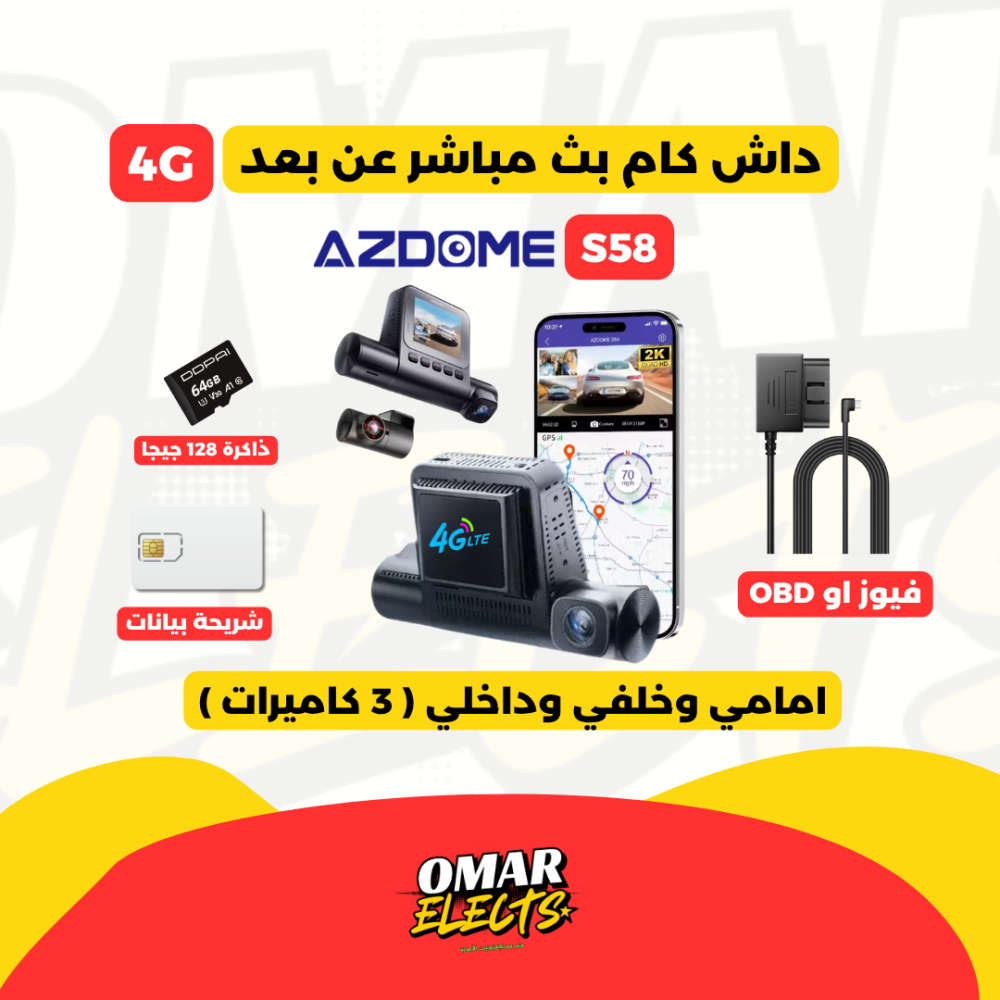 - كاميرا ازدوم S58 4G (ثلاثية القنوات – أمامية، داخلية، خلفية)